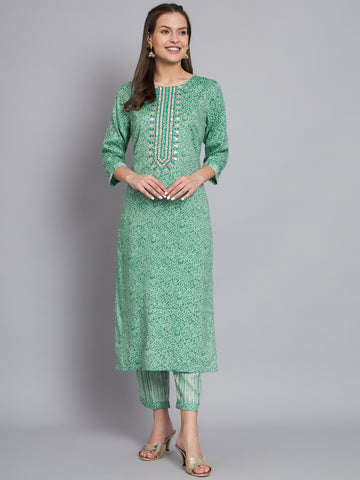 Womens green bandhani kurts with trouser ethnic top bottom kurta set